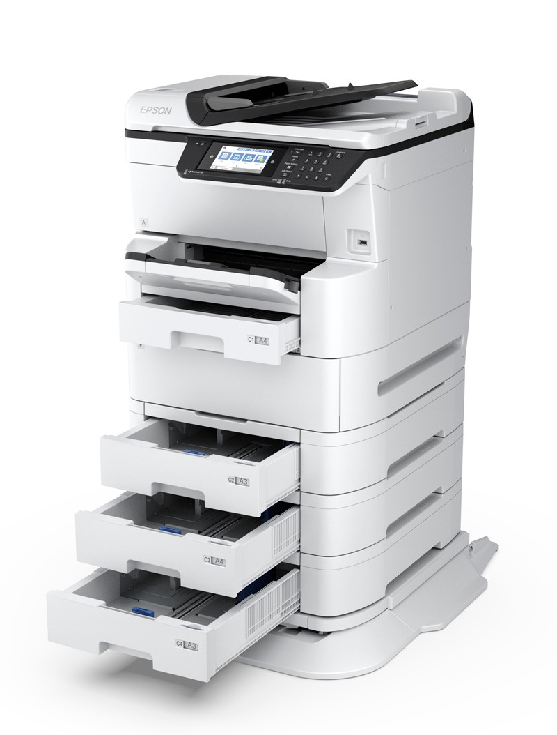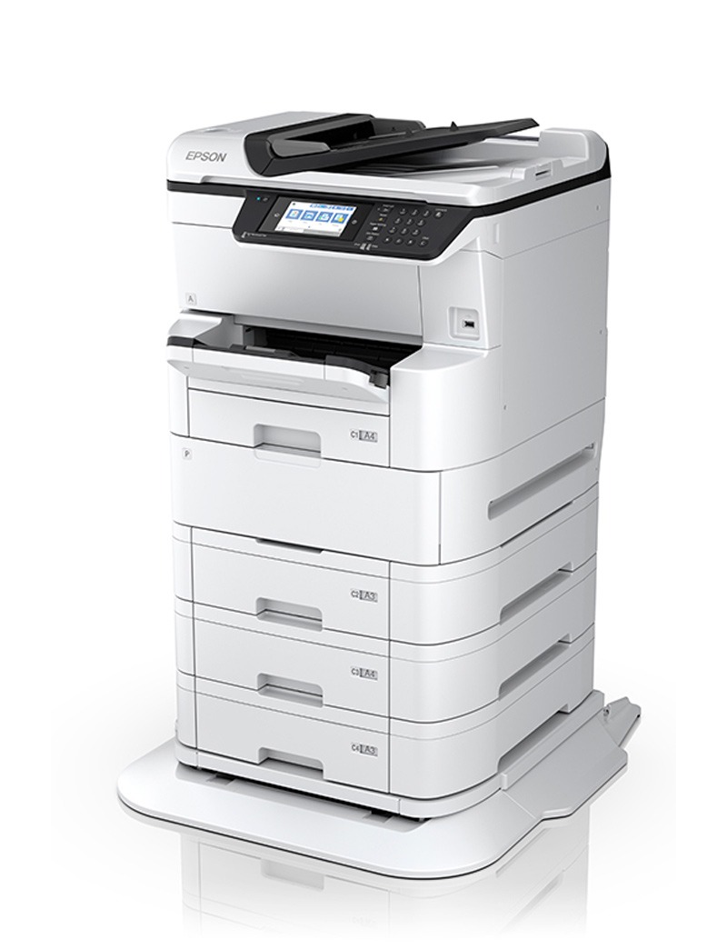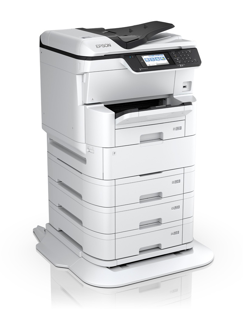 The WF-C878RTC is a 24 page per minute A3 capable Colour Digital Multifunction Inkjet Device with paper feed capacity of up to 1830 sheets. The Replaceable Ink Pack System lets you print up to 86,000 ISO pages mono/50,000 ISO colour before changing the ink.